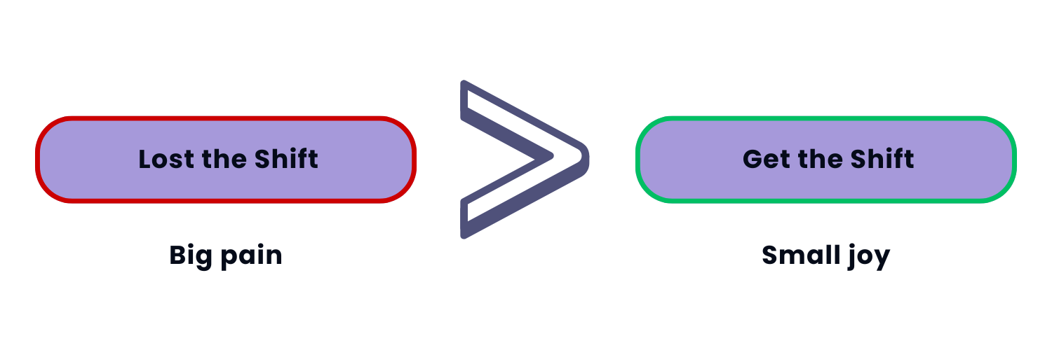 In self-scheduling, this means staff members often feel the perceived loss of shifts they wanted but didn't get far more acutely than the gain of good shifts they were assigned. Even if the overall schedule is beneficial, missing out on a highly desired shift can create disproportionate negative feelings.